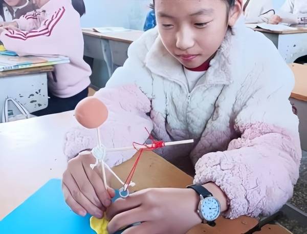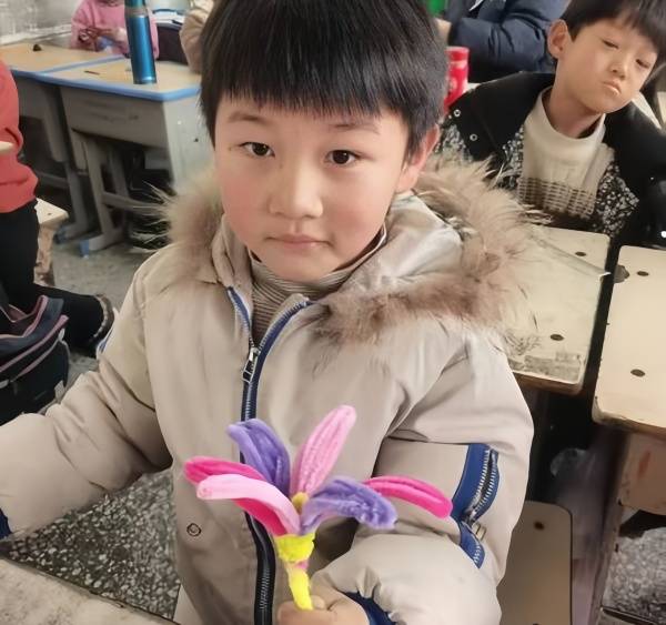 在手工教室里,学生们正专注于扭扭棒花束的制作。彩色的扭扭棒在手中弯曲、缠绕,逐渐变成一朵朵形态各异的花朵。有学生将完成的作品捧在手中,脸上带着满足的微笑,仿佛捧着冬日里绽放的春天。教室里,大家互相交流技巧,分享创意,让冰冷的冬季充满了温暖的互动。