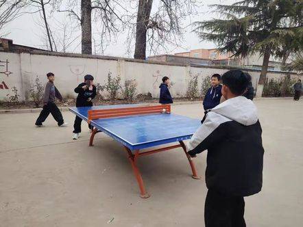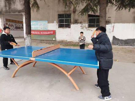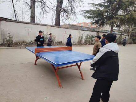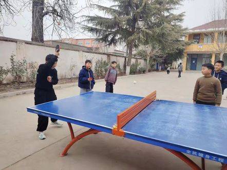 室外的乒乓球场地同样热闹。男孩们分成小组进行比赛,小小的乒乓球在球台上来回飞舞,他们挥动球拍,身姿矫健。一旁还有同学围观加油,不时传来阵阵欢呼。寒冷的天气丝毫没有影响他们的热情,反而让运动的身影更加充满活力。