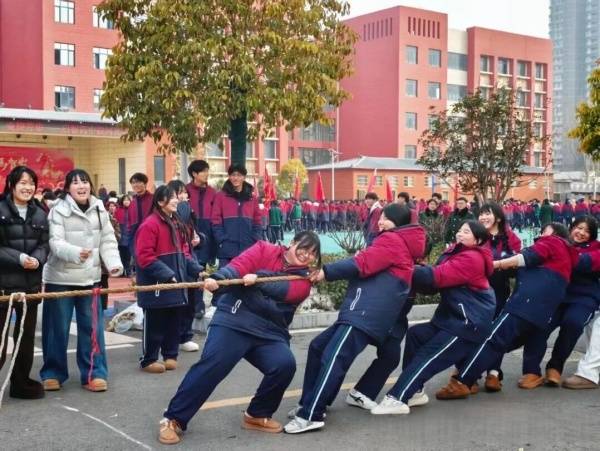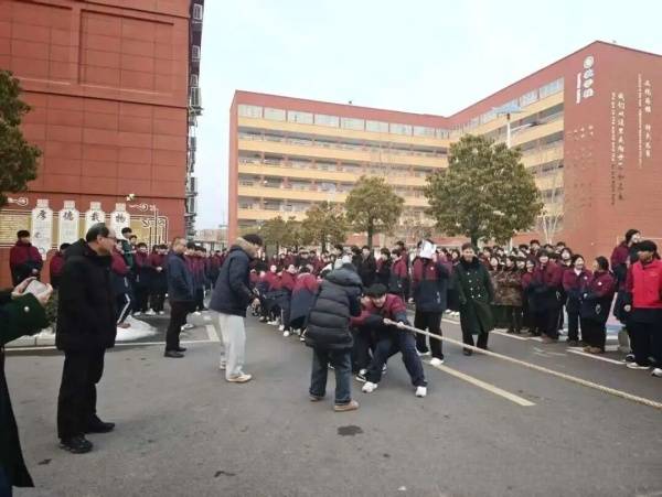 为丰富校园文化生活,锤炼学子意志品质,增强集体凝聚力与团队协作精神,1月28日下午,我校操场之上人声鼎沸、热血澎湃,校园拔河比赛正式拉开帷幕。全体参赛学子以绳为媒、以赛会友,在力量的角逐中彰显青春风采,在默契的配合中凝聚班级力量,让拼搏的汗水浇灌青春沃土,让团结的呐喊响彻校园长空。
