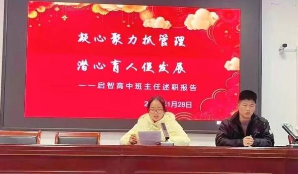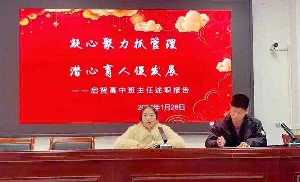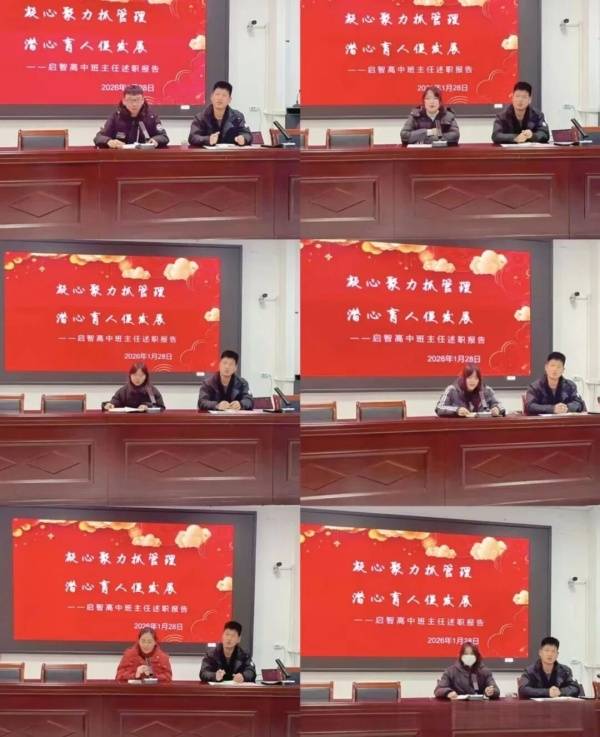 耕耘不辍,步履不停。为全面复盘年度班级育人工作,交流管理经验、凝聚育人合力,1月28日上午,启智高中班主任年终述职报告会在学校大会议室顺利举行。本次会议由贺校长主持,全体班主任参会,各位班主任作为班级育人核心力量,以详实复盘、鲜活案例细数耕耘点滴,分享管理智慧,在回望总结、交流互鉴中明晰前行方向,凝聚育人共识,夯实班级管理根基,蓄力整装再启新程。