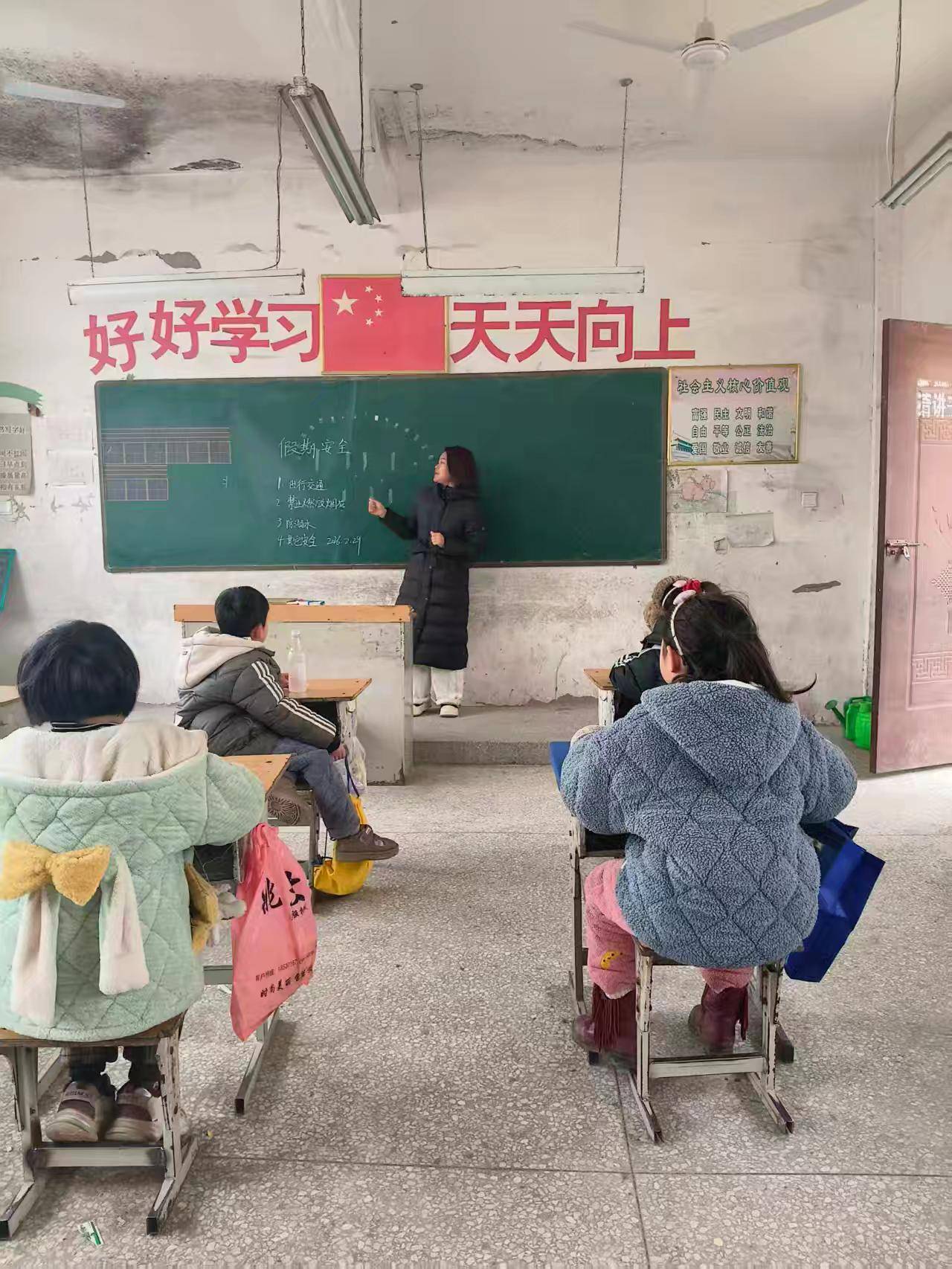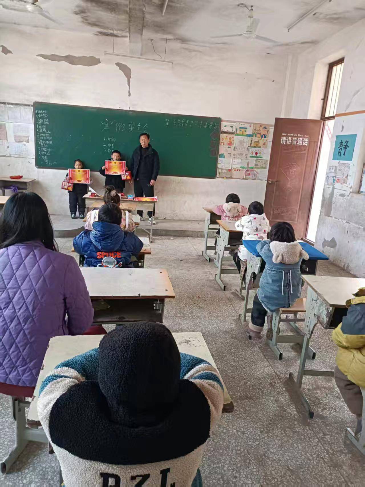 在各班级分会场,班主任们有序开展了期末专项工作。他们逐一为学生发放成绩单,结合本学期的课堂表现、学业进步和行为习惯,进行了个性化点评,既有肯定与鼓励,也有针对性的假期提升建议。在布置假期作业时,老师们采用分层设计思路,既安排了语文生字词巩固、数学口算打卡等基础任务,也设置了“春节主题手抄报”“家庭劳动打卡”等实践活动,鼓励学生在休息之余兼顾学习与成长。最后,班主任再次强调了安全事项,并向学生和家长公布了假期联系方式,确保家校沟通顺畅。