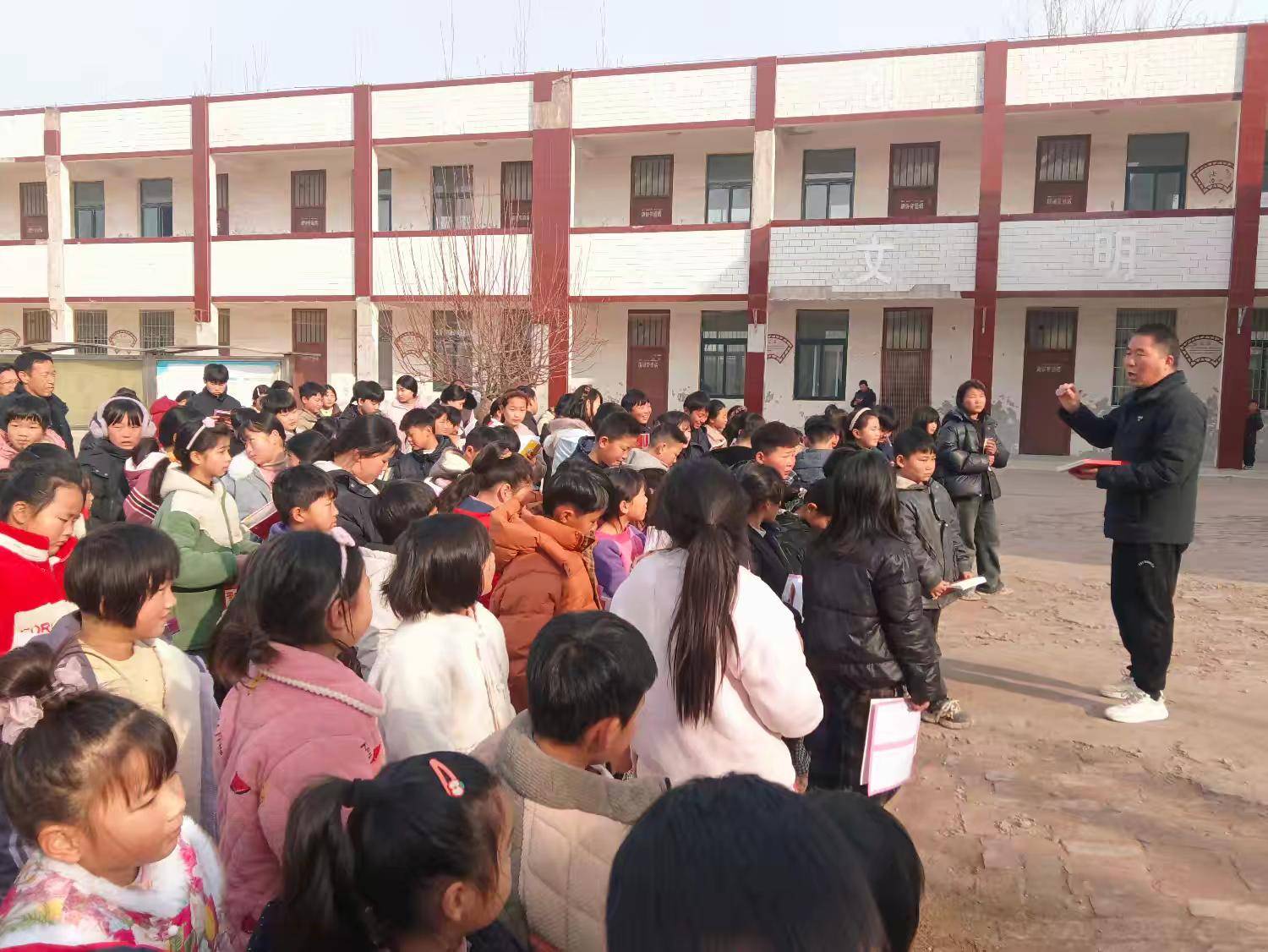 典礼伊始,校长XXX发表讲话,首先对本学期学校在教学质量提升、学生活动开展等方面取得的成果进行了总结,对全体师生的辛勤付出表示感谢,并向表现优异的班级和学生致以热烈祝贺。随后,校长围绕“交通安全、居家安全、食品安全、人身安全、网络安全”等核心板块,进行了假期安全专题宣讲。他特别提醒学生:冬季是溺水、火灾等事故高发期,要坚决不私自前往河湖冰面玩耍,不随意触碰家中电源和燃气设备;面对陌生电话和网络信息要提高警惕,严防诈骗;外出时务必告知家长行程,确保人身安全。