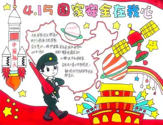 课后,同学们利用班会课学习到的国家安全知识,用手中的画笔绘制了精美的“国家安全知识”手抄报,表达自己的爱国情怀。