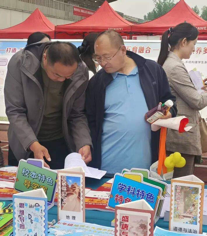 教学成果展示区,实验中学各年级、各学科的校本课程、导学案整齐陈列,每一本校本课程都凝聚着教师们的教研心血,每一份导学案都贴合学生学情、凸显教学重点,全面展现了实验中学在课程改革、教研提升方面的扎实成效。