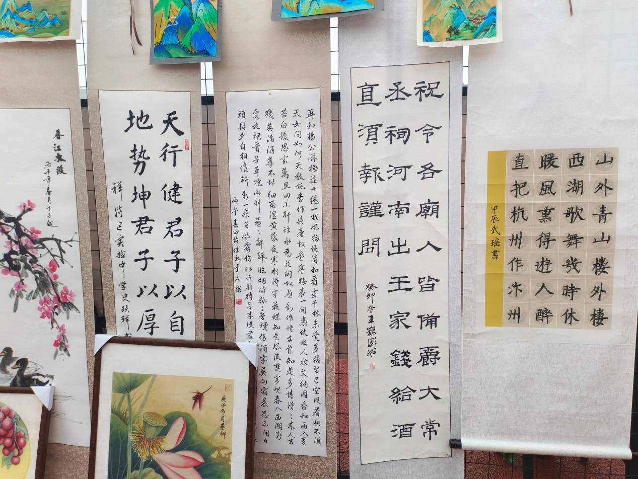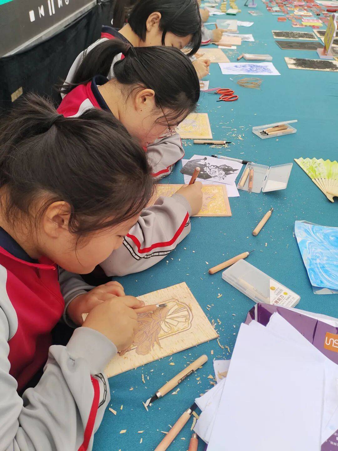 社团展示区热闹非凡,无人机社团的学生操控无人机灵活穿梭、精准悬停,展现出扎实的操作技能;木版年画、漆画扎染、篆刻社团的学生现场创作,一笔一画、一刀一刻间,尽显传统文化的魅力,参会人员纷纷驻足观看,不少人亲身体验创作过程,并将自己亲手制作的作品带走留作纪念,成为本次交流会的一大亮点。书法绘画展示区,一幅幅笔法娴熟、充满古风韵味的作品,展现了学生们的艺术天赋与审美素养,赢得了参会人员的广泛好评。