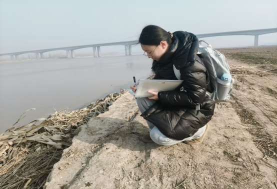 在黄河岸边,社会实践队的队员们化身“行走的记录者”,蹲在土黄色的堤岸旁,就着开阔的河面与远处的大桥,将眼前的河道形态、水质状况等一手信息细致地记录在调研本上。脚下是混着玉米秸秆的松软泥土,身旁是裹挟着泥沙缓缓流淌的黄河水,远处的大桥横跨河面,队员们以纸笔为媒介,把课堂里的专业知识和眼前的真实地貌一一对应,让实践调研的每一步都扎实可感。