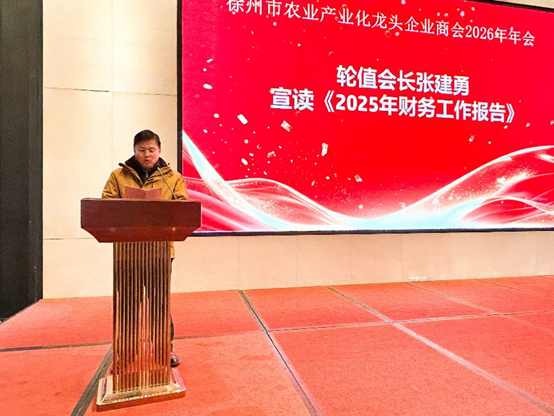 徐州市农业产业化龙头企业商会轮值会长张建勇宣读《2025年财务报告》