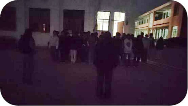 当天晚上7:10,还进行了夜间疏散演练。随着疏散哨声一响,同学们迅速离开座位、弯腰、抱头、快速而有序的跑下教学楼,冲向操场集合地点集合,各班点名,一个不落。整个过程仅用时2分多钟。