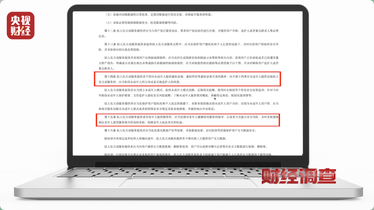 2026年4月10日,《人工智能拟人化互动服务管理暂行办法》正式公布,《办法》中进一步明确了安全评估和算法备案的相关要求,同时还对未成年人和老年人使用拟人化互动服务作出了相关规定。