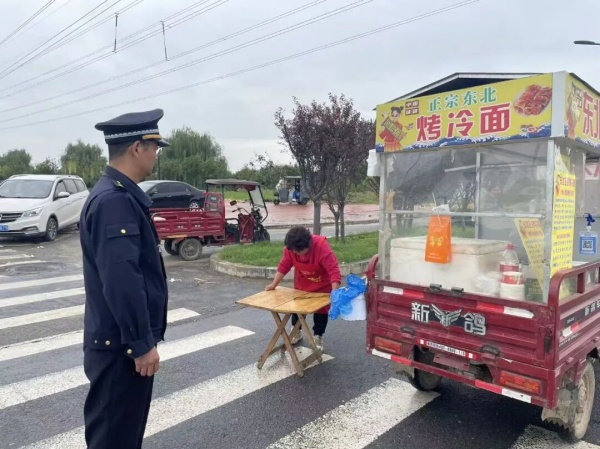 执法人员以“柔性+文明”执法模式,对城区主次干道、商业街区、农贸市场周边等重点区域开展高频巡查,重点整治占道经营、店外堆放、乱贴乱画等市容乱象问题。巡查中,执法人员主动帮助商户将店外商品搬入店内,对流动摊贩实行“疏堵结合”引导至指定区域经营,同时向商户宣传市容管理规定,呼吁商户文明经营。截至目前,已出动执法人员100余人次、车辆30余辆次,规范店外经营10余家,清理占道游商12处,让城市秩序与烟火气和谐共生 。