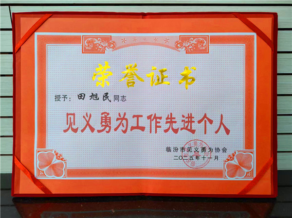 2025年1月14日,侯马市山西军威防护科技股份有限公司货车司机田旭民在高速路上发现一名五六岁男孩在车道中间奔跑,情况十分危急。他沉着果断停车救下孩子,并安全移交警方,最终孩子平安回到父母身边。当家长通过微信转来500元感谢费时,田旭民婉言谢绝,体现了见义勇为者的高尚品格。