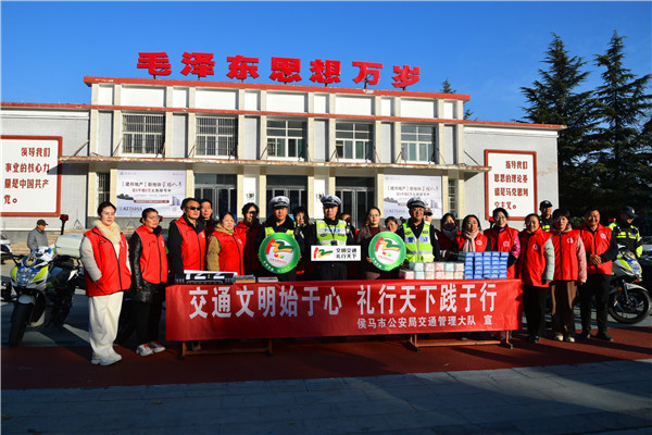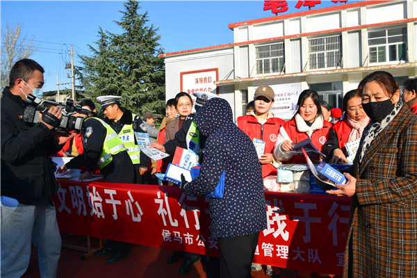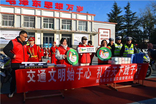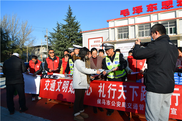 (本网山西讯:秦明忠 郭海红)12月2日是第14个全国交通安全日,今年的主题是“文明交通,你我同行。”在这个寓意着守法规、知礼让的特殊日子里,侯马市交通管理大队、高速民警、路东街道办事处和新民巷社区联合侯马市新时代文明实践文艺轻骑兵团队共同开展一场交通安全宣传服务活动。