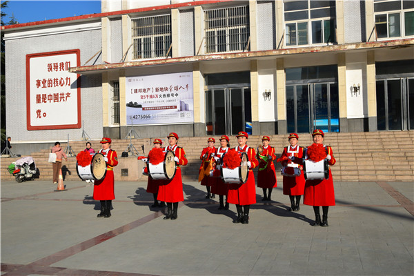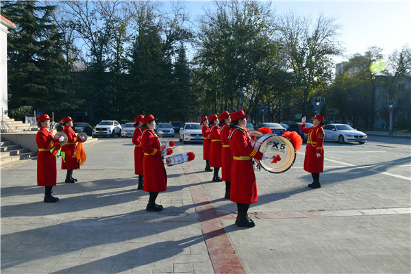 桥乡鼓舞队队长席玉惠指挥:军乐鼓表演