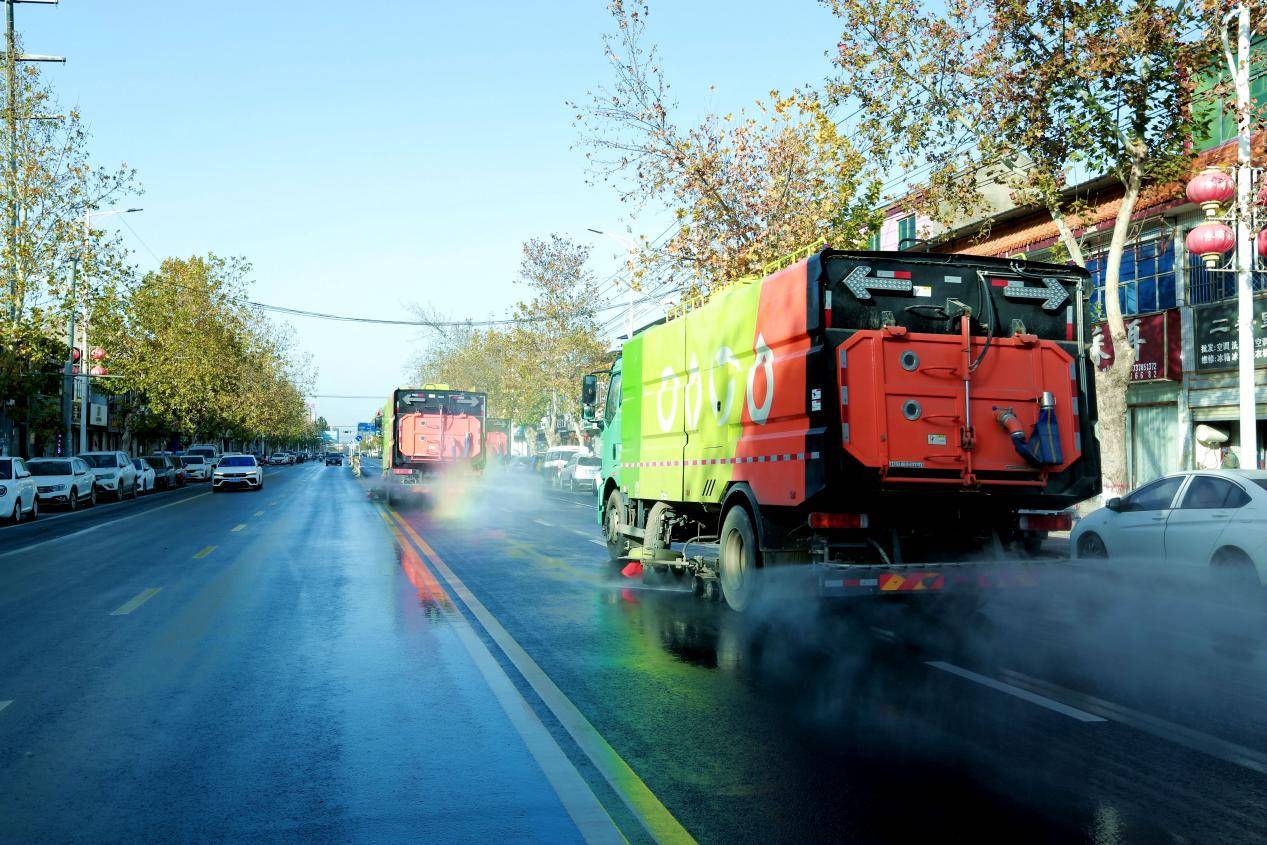 近日通许县城管局认真落实县委县政府《空气质量持续改善行动实施方案》中扬尘治理要求,全面采用“高压喷雾冲洗+机械清扫+人工保洁”的联合作业法,直接减少扬尘对空气中颗粒物的影响,实现了从“扫”到“洗”的升级,有力提升道路洁净度,为县域空气质量持续改善提供坚实保障。