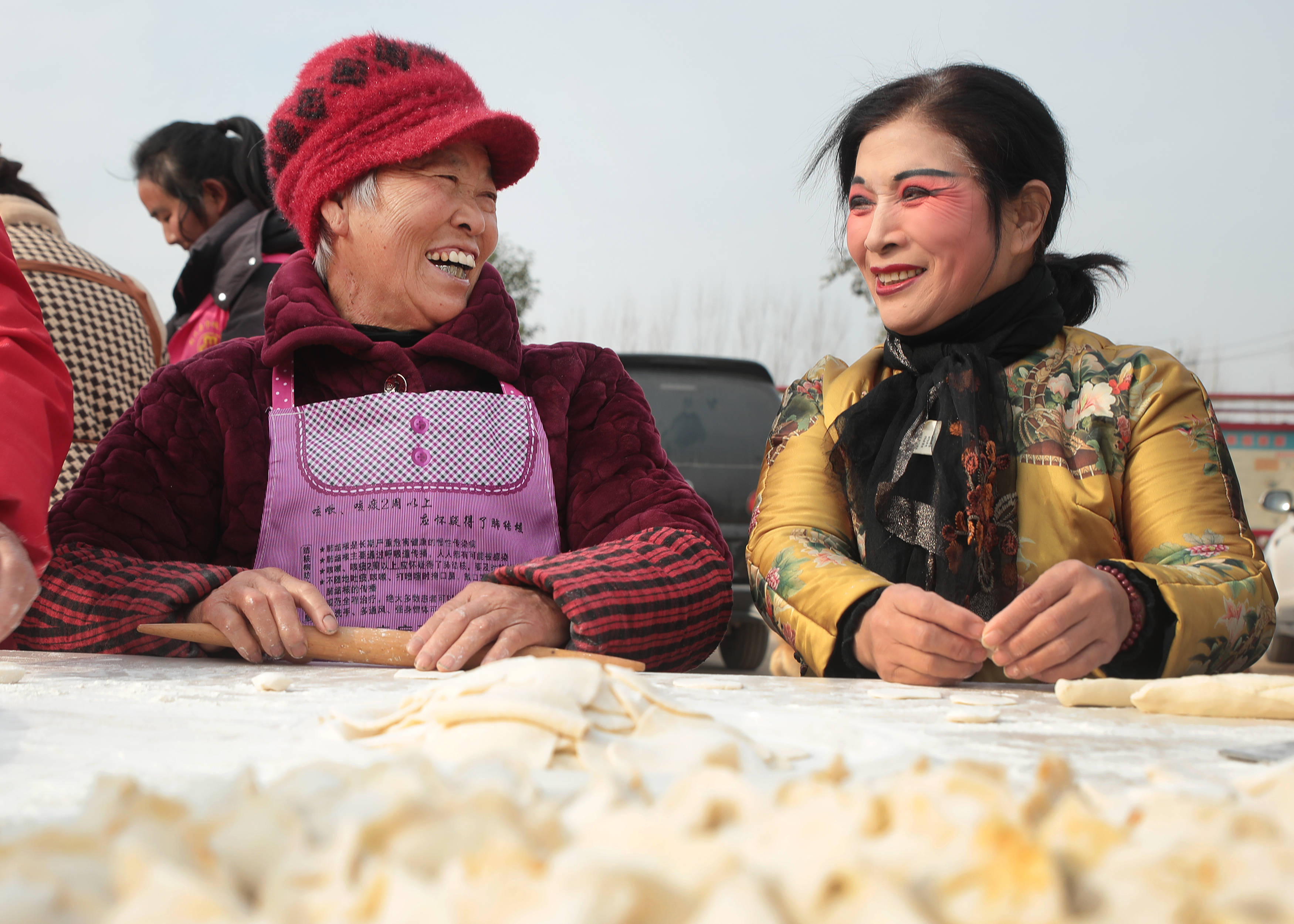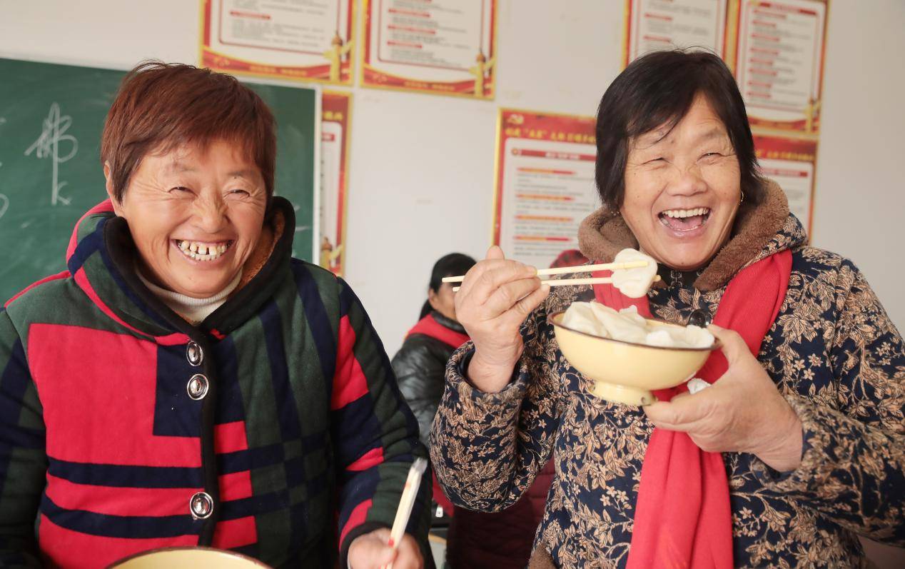 12月21日冬至,尉氏县张市镇冯岗村的广场上,豫剧唱得正欢。村里第五届冬至饺子宴热热闹闹地开席了。132位老人围坐在一起,脸上的笑模样儿,比冬天的日头还暖人。