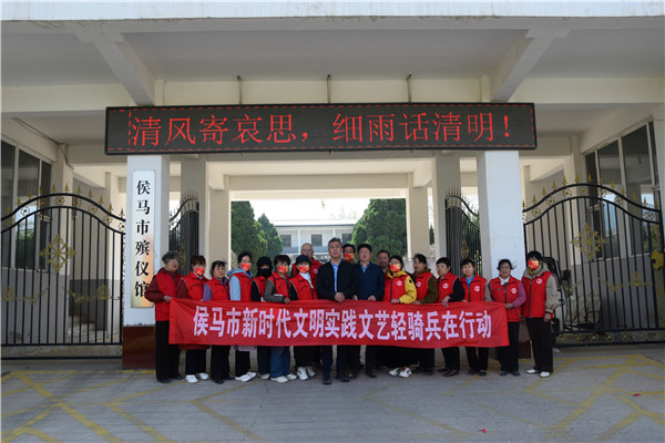 (本网山西讯:于妮妮 秦明忠)为积极响应全市“文明屏障”行动号召,倡导移风易俗、文明祭扫的新风尚,2026年4月5日一大早清明节当天,侯马市新时代文明实践文艺轻骑兵团队走进市殡仪馆,组织开展了一场以“鲜花换纸钱、文明寄哀思”为主题的文明实践志愿服务活动。