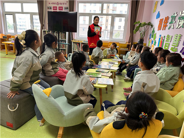 在自主阅读环节,孩子们在社区图书角挑选自己喜爱的图书,或静静翻阅,或结伴交流。社区工作人员与孩子们一对一共读,耐心讲解、悉心陪伴,在互动中传递关爱,在共读中拉近距离。此次活动以党建为引领,充分整合辖区教育资源,推动社区与幼儿园协同联动,让邻里之间多了交流互动,让共建共治共享理念在细微处落地生根。