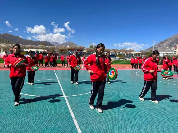 只是,在这里,我仍未打听到卓玛和同学们的消息。课间时分,在大操场上,学生们跳起了有民族特色的体操和舞蹈。
