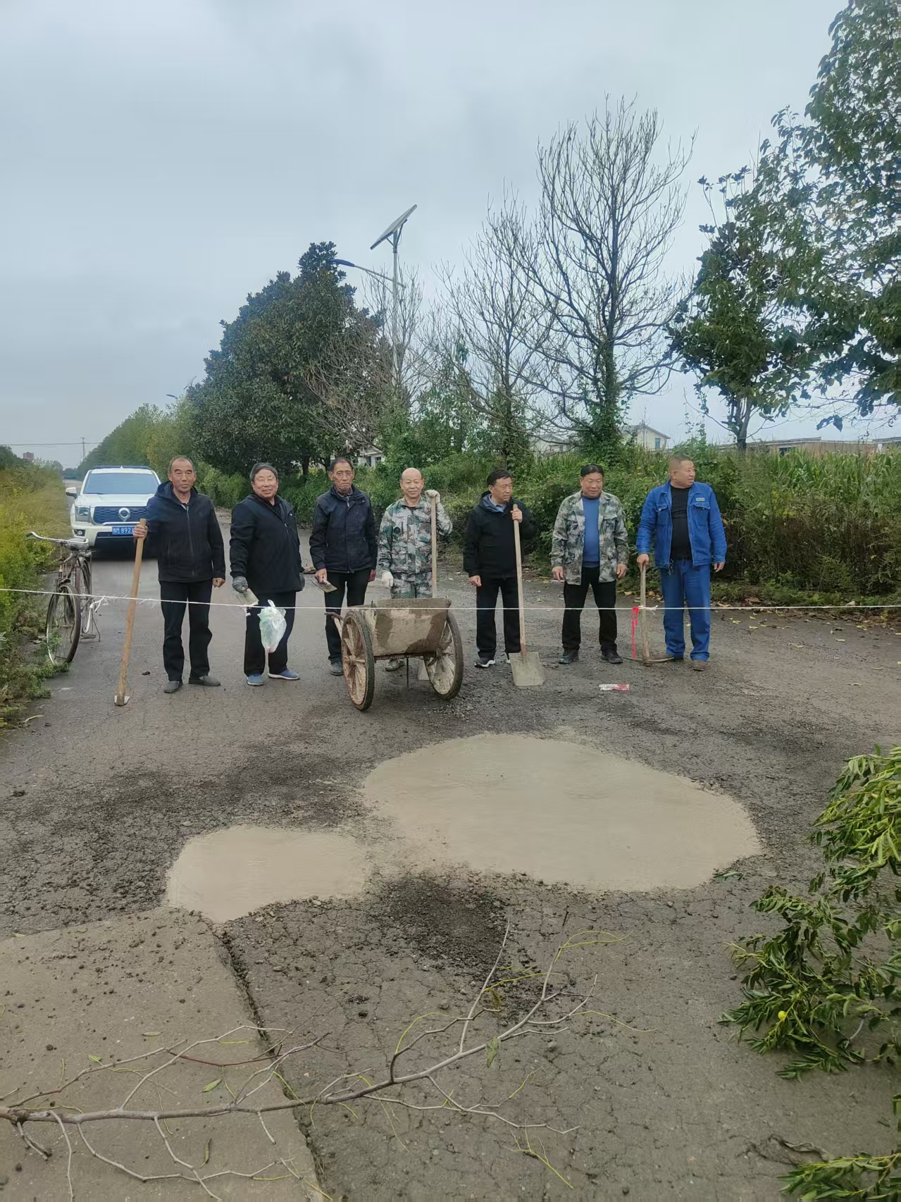 抵达后,队伍立刻分工协作:有人往返拉水拌灰,确保混凝土配比精准;有人俯身清理坑内杂物与积水,为修补筑牢基础。近二个小时的紧张施工中,队员们不顾尘土与劳累,始终紧盯工程质量。当最后一方混凝土铺平坑洼,原本颠簸难行的路段变得平整坚实。过往车辆纷纷停下,驾驶员摇下车窗连声称赞,而满身汗水的老兵们虽疲惫不已,脸上却绽放出欣慰的笑容——用实干解决群众难题,这份“为群众办实事”的满足感,让每个人心中都暖意融融。