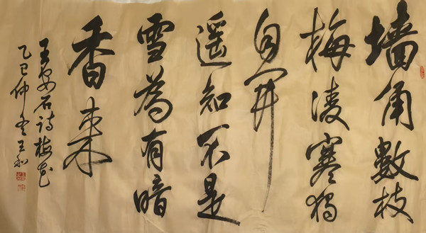 伉俪情深,王和老师的书法艺术不断提升与他的爱人周老师分不开,是周老师承担家务琐事才使得王和老师能有更多精力投入到书法艺术创造中。相信新的一年,王老师一定能在当代书法领域再创辉煌!