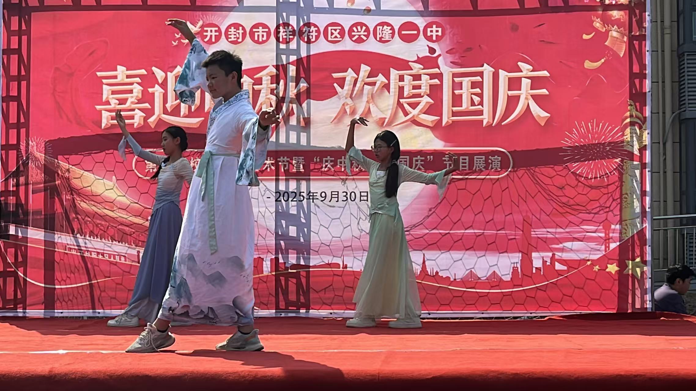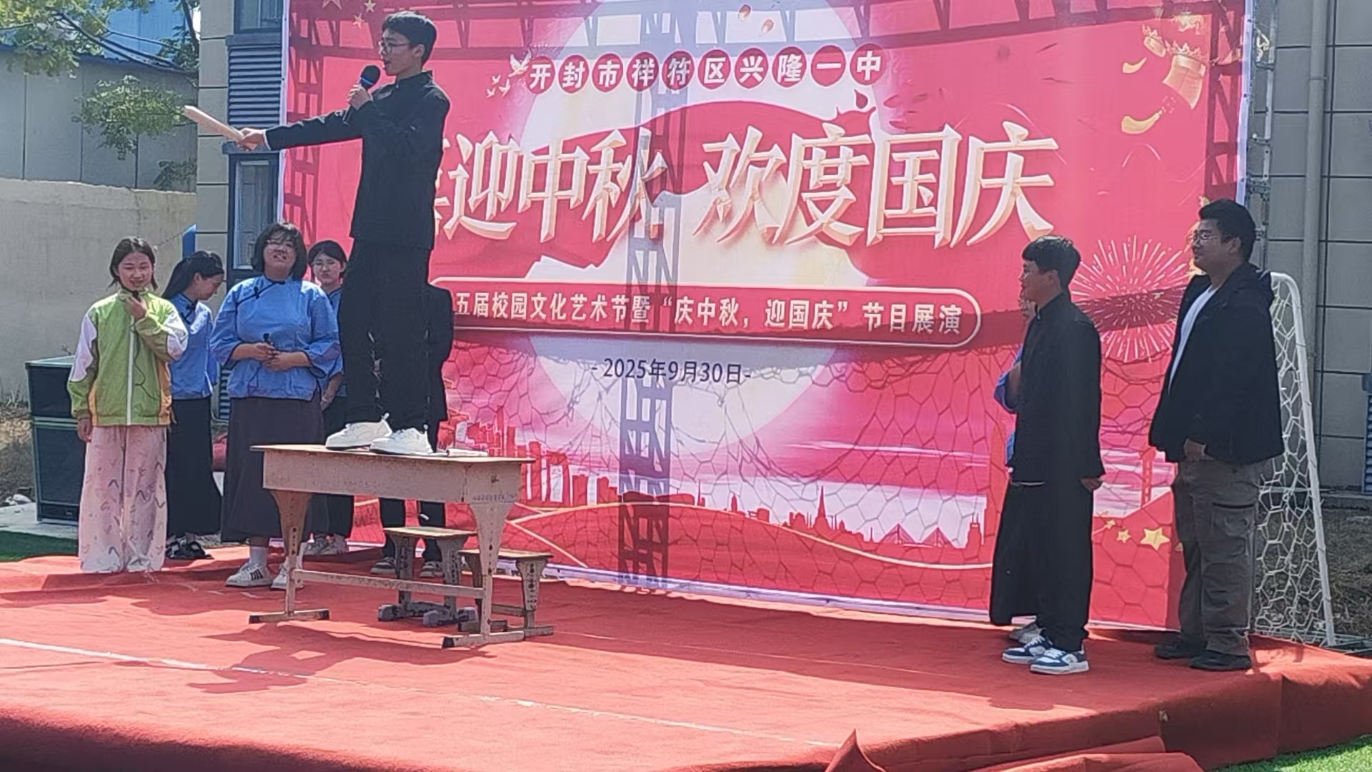 2025年9月30日上午兴隆一中第五届学校文化艺术节节目展演圆满结束。此次文化艺术节以“喜迎中秋,欢度国庆”为核心,通过开展一系列丰富多彩的艺术活动,为全校师生搭建了展示才华、交流学习的平台,有效营造了团结和谐,积极向上、充满活力,共同提高的校园文化氛围。