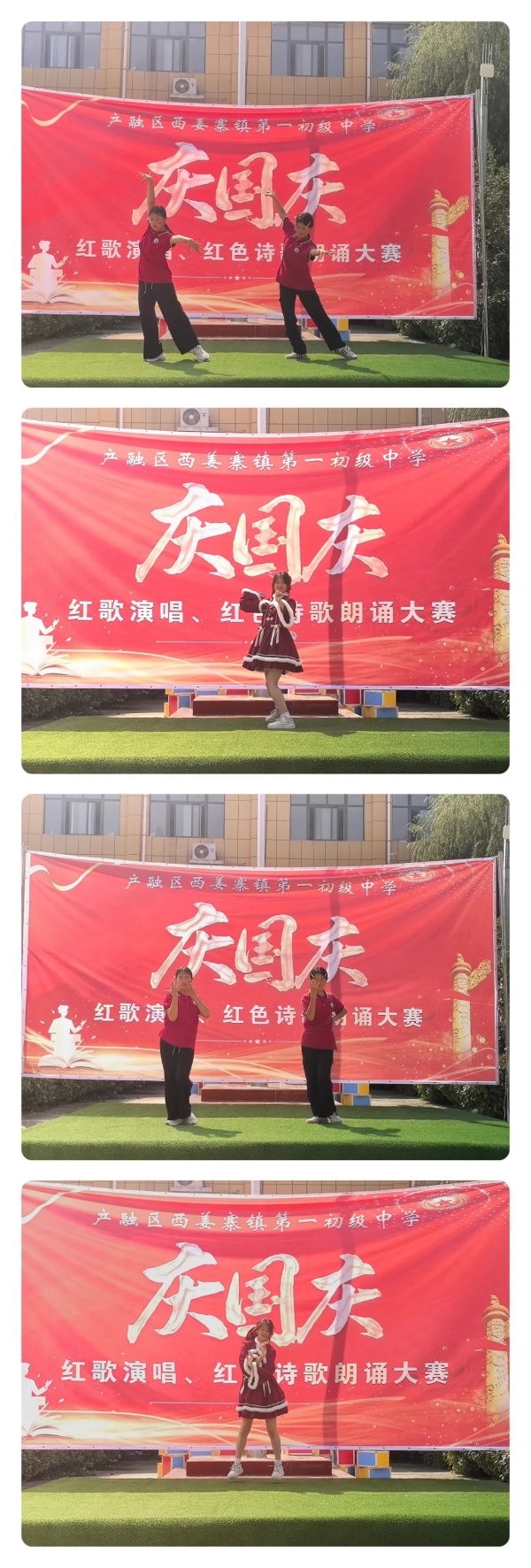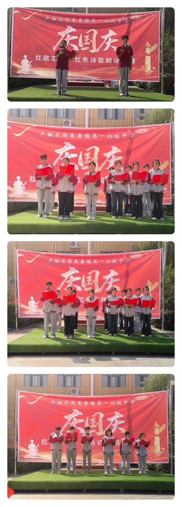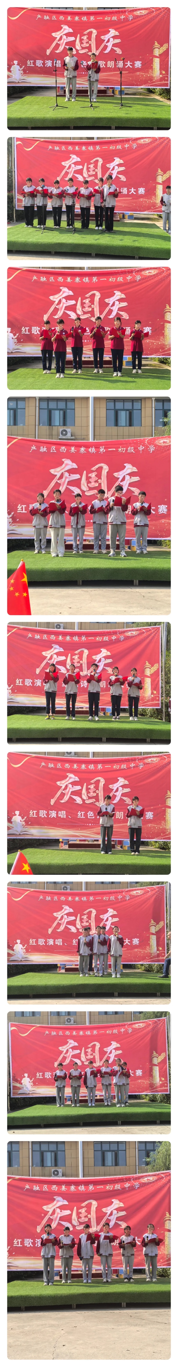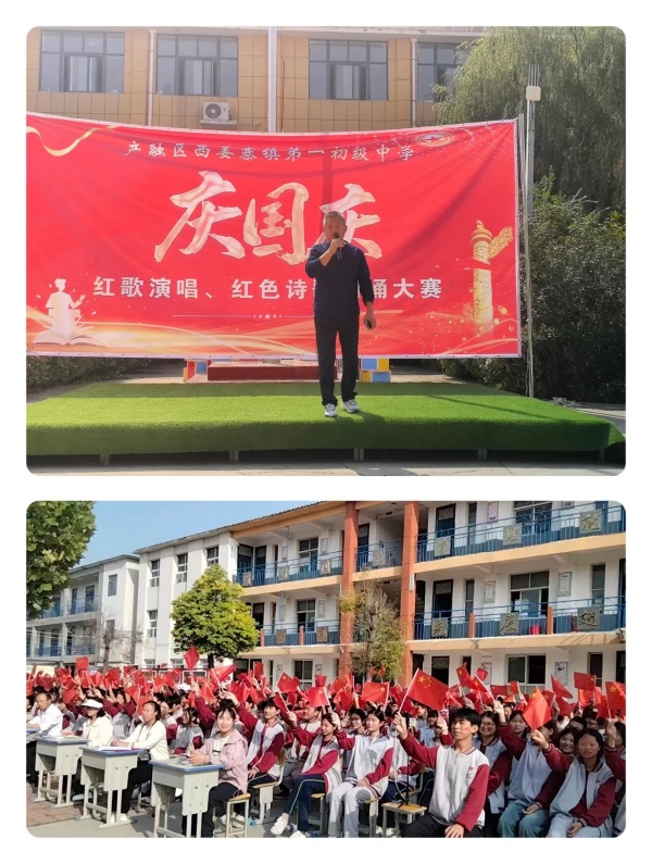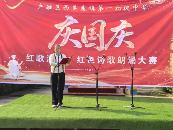 随着文副校长宣布“西姜寨一中庆国庆诗歌朗诵比赛完美收官”,全场再次响起热烈的掌声,师生们挥舞着手中的小国旗,齐唱《歌唱祖国》,歌声与欢笑在校园上空久久回荡。