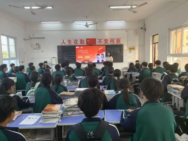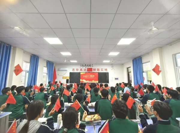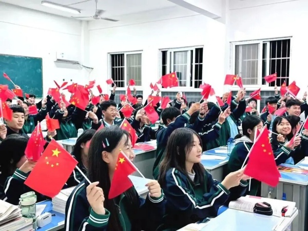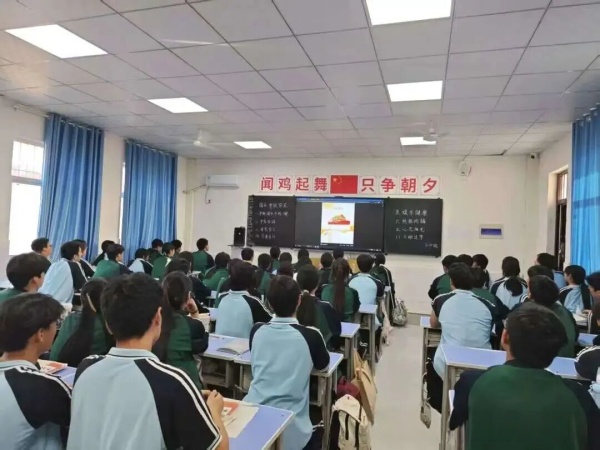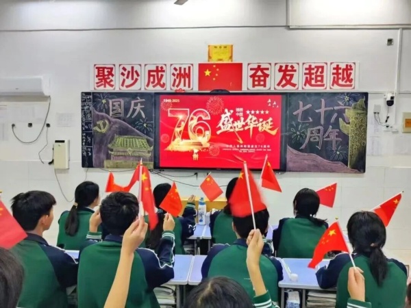 爱国教育融入课堂,扎根心田。各班级的国庆主题班会上,班主任借助纪实短片,引领同学们重温新中国波澜壮阔的奋进史诗。从黑白到彩色的光影流转,不仅直观展现了国家由贫弱走向富强的伟大跨越,更完成了一场跨越时空的对话,让自豪感与使命感在学子心中油然而生。