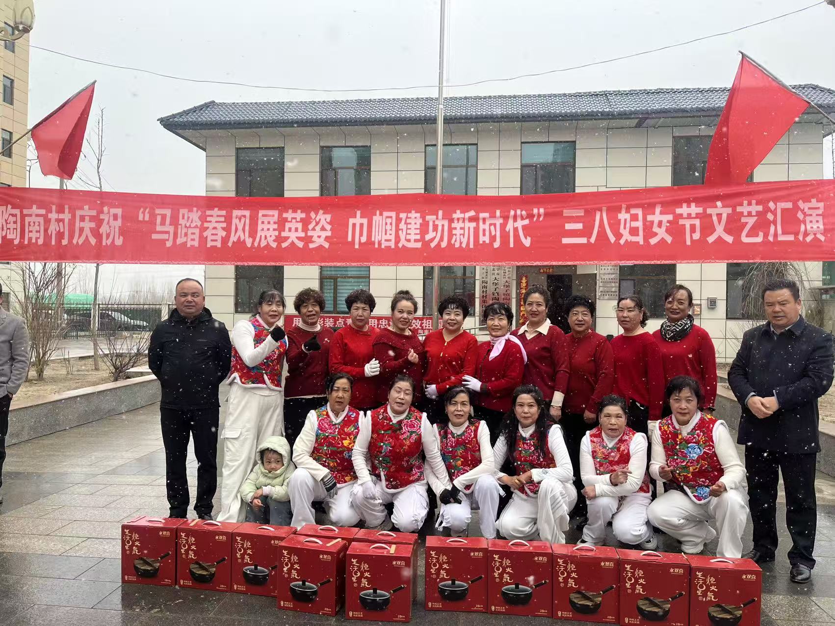 瑞雪兆丰年,巾帼绽芳华。为丰富全村妇女群众的精神文化生活,在第116个“三八”国际劳动妇女节来临之际,西宁市城北区大堡子镇陶南村党支部顶着初春瑞雪,组织开展“党建引领映雪红 巾帼起舞暖民心”主题文艺汇演。漫天飞雪中,全村女同胞齐聚一堂,用热情驱散寒意,共庆节日。