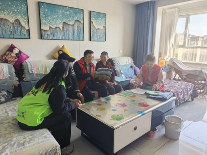 暖心走访残疾户,政策关怀暖人心。聚焦特殊群体,传递民生温度,陶北村工作人员同下乡干部工作小组成员深入辖区残疾家庭,开展入户走访慰问活动,将政策关怀与暖心帮扶送到群众心坎上。工作人员带着慰问物资,与残疾群众家属亲切交谈,详细了解他们的身体状况、生活困难、医疗保障及政策享受情况,认真倾听诉求,用心排忧解难。结合中央一号文件中健全困难群众帮扶机制、完善弱势群体保障的相关要求,一对一为他们解读残疾人补贴、医疗救助、临时帮扶等专属政策,让残疾家庭清晰知晓国家的暖心举措,切实感受到陶北村“幸福里”的贴心服务,更体会到国家政策对特殊群体的真切关怀。